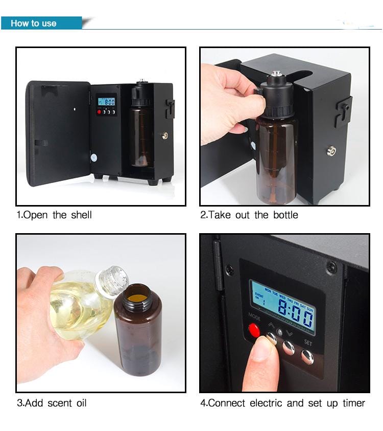 - Uses low noise fan technology which diffuses the fragrance evenly in the space.
