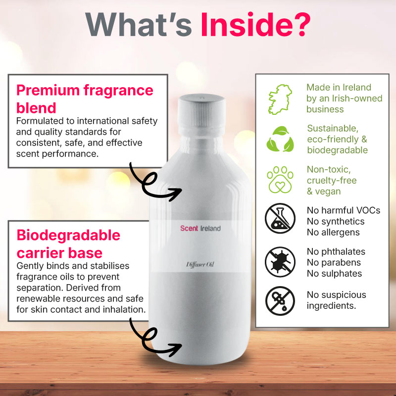 - Please note: This fragrance oil is professionally crafted in our lab. It is specially formulated for use in electric scent diffusion systems only and is not suitable for candle-making, soap crafting..etc.